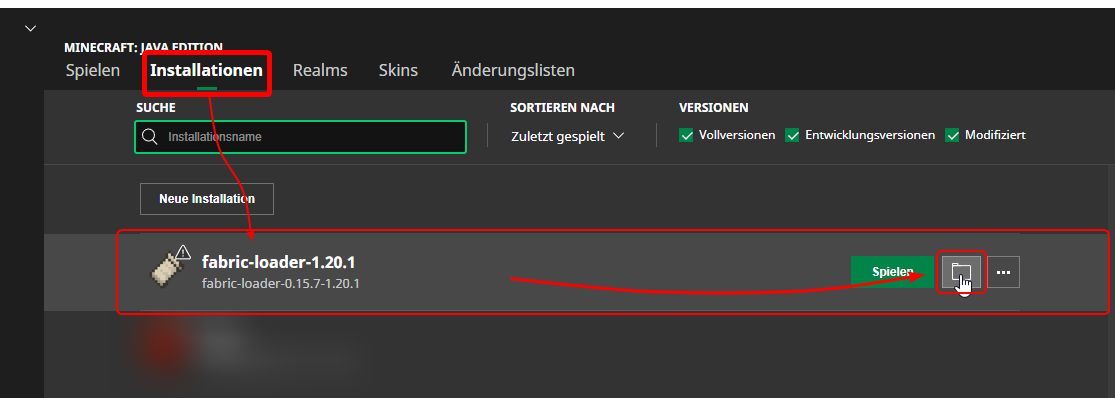 installierte Fabric Version auswählst (Sie heißt fabric-loader-0.15.7-1.20.1).