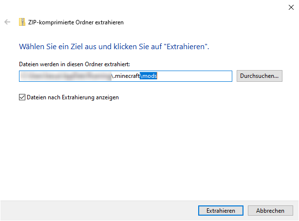 Mit einem Doppelklick auf die mods.zip-Datei wird sie entpackt und automatisch